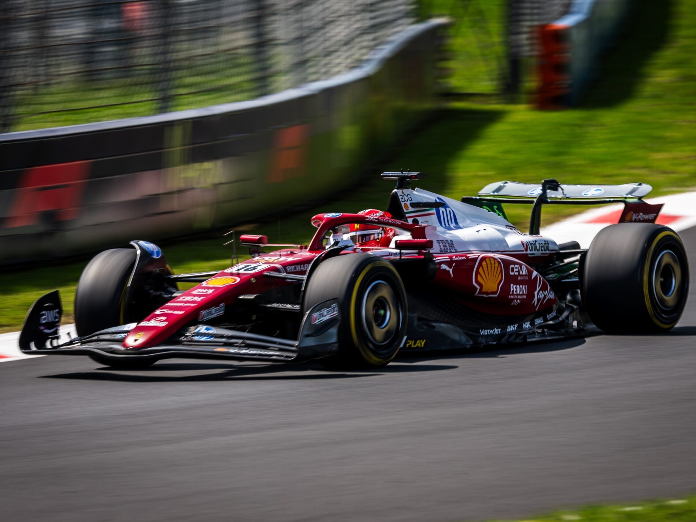 Charles inizia bene la sessione e nonostante la sua SF-25 sia difficile da guidare, un po’ nervosa, dopo poco anche Hamilton passa alla soluzione più scarica. Il cronometro sembra premiare la Ferrari, e Monza esplode: Hamilton è 1°, Leclerc 2°, e dietro di lo ro Sainz e Verstappen sono staccati di cinque decimi.